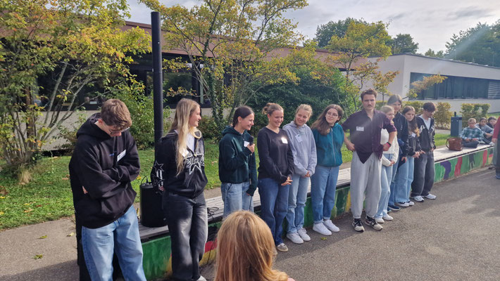 LehrerInnen + ein FSJler. Außerdem waren 5 SchülerInnen und 2 Lehrerinnen der Carl-Orff-Schule aus Villingen dabei.