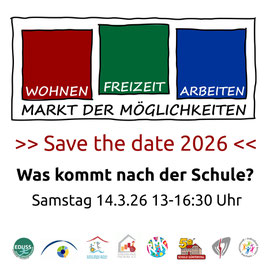 Der Termin für den Markt der Möglichkeiten 2026 zur Frage "Was kommt nach der Schule?" steht fest. Der Markt findet am 14.3.2026 von 13 bis 16:30 Uhr in den Räumen der benachbarten Esther-Weber-Schule statt.